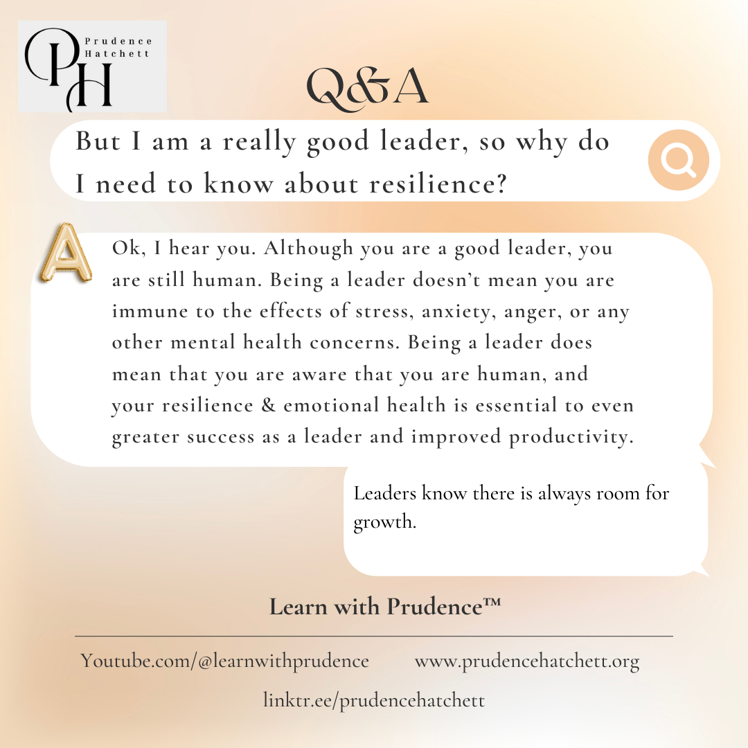 Prudence Hatchett is a Leadership Resilience Strategist, and successful business owner. She is known for her dynamic blend of real-world insight, clinical expertise, and leadership development strategy.